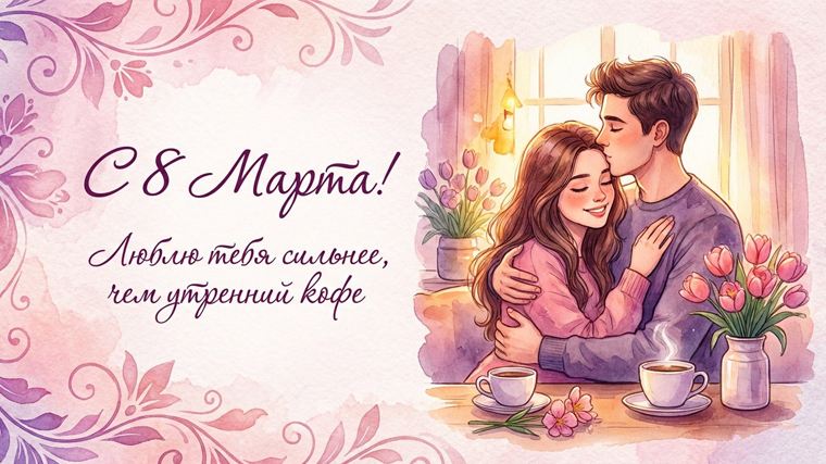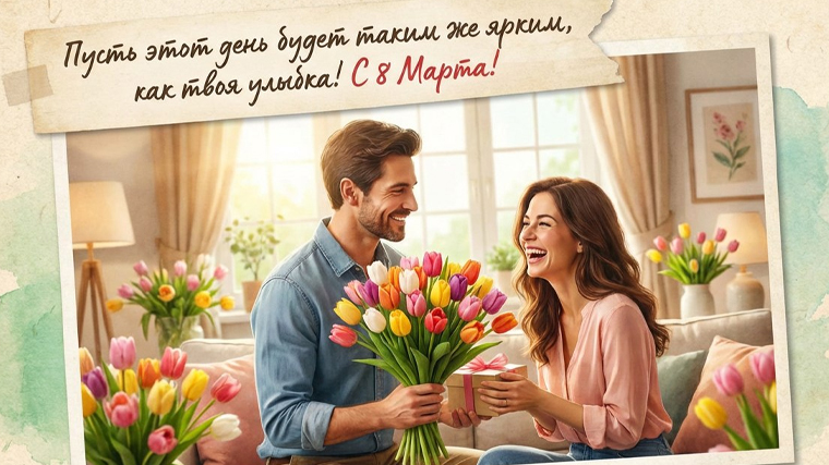 «Любимая жена, поздравляю с 8 Марта! Спасибо за твою заботу, тепло и любовь, которые делают каждый день ярче!»