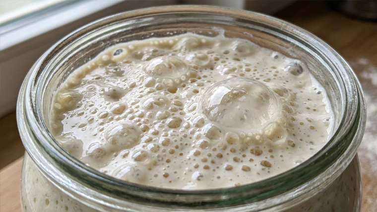 Готовая закваска для подкормки хранится в холодильнике. Перед использованием и введением в рецепт ей нужно дать согреться до комнатной температуры.