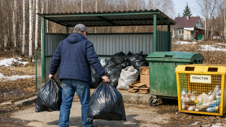 Бытовой мусор — это пищевые отходы, упаковки, пакеты. Его нужно регулярно выносить на специальную площадку, организованную садоводческим товариществом. Если такой площадки нет (например, дача находится в деревне), мусор следует отвозить в ближайший муниципальный пункт сбора.