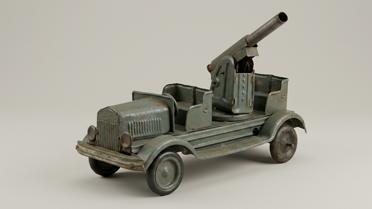 Еще до начала Великой Отечественной войны, в начале 1930-х годов, в СССР появились первые металлические игрушки сугубо военной тематики. Их отличала удивительная реалистичность: миниатюрный тягач с пушкой, зенитное орудие, танкетка.