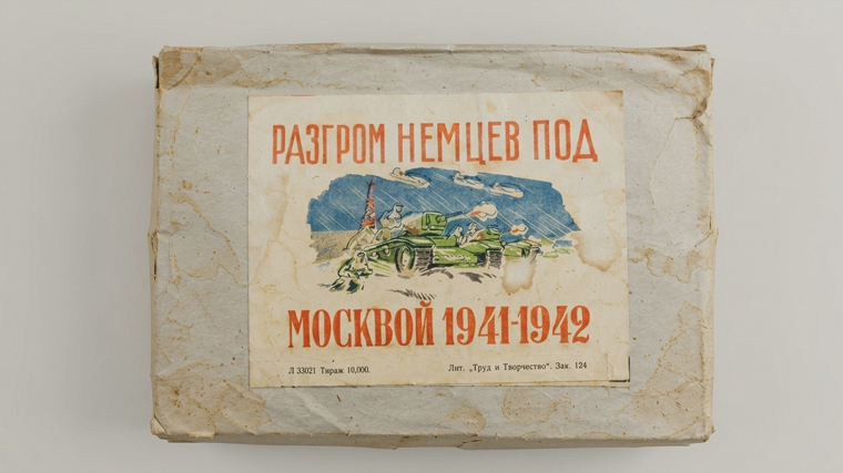 Яркий пример — разрезная картонная игра «Разгром немцев под Москвой», которая вышла в январе 1942 года. Листовой комплект игры, помещенный в красочную коробку, состоял из фигурок советских солдат-лыжников в белых маскхалатах, карикатурных изображений немцев, моделей военной техники обеих сторон (вражеская техника изображалась в разрушенном виде), а также панорамы заснеженного леса с контурами Москвы вдали.